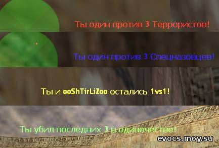 Этот плагин выводит сообщения на экран, если ваших всех убили,показывает сколько противников,показывает сообщение если вы с противником остались 1 на 1,и так же если вы 1 убили всех врагов...